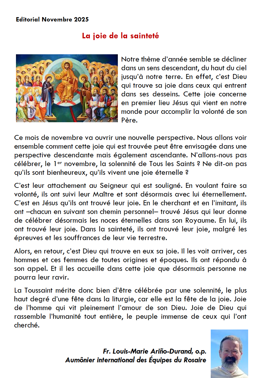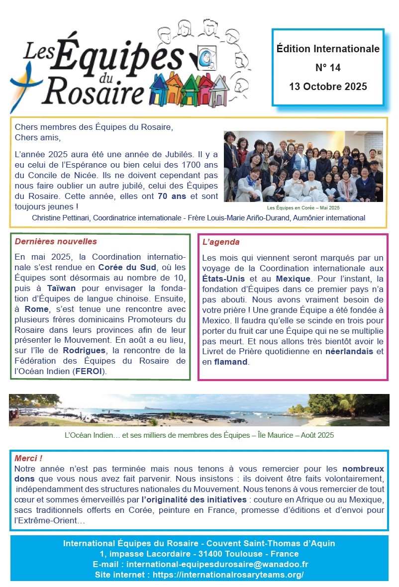 13 octobre : Messe pour les bienfaiteurs des Équipes du Rosaire internationales