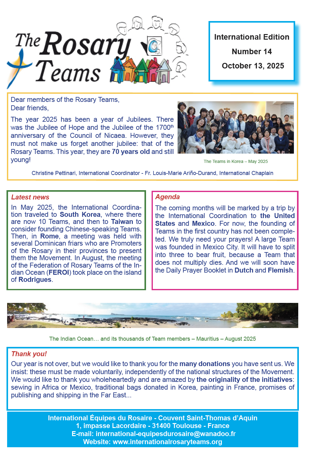 October 1 to 4: Participation in the Pilgrimage of the Rosary in Lourdes