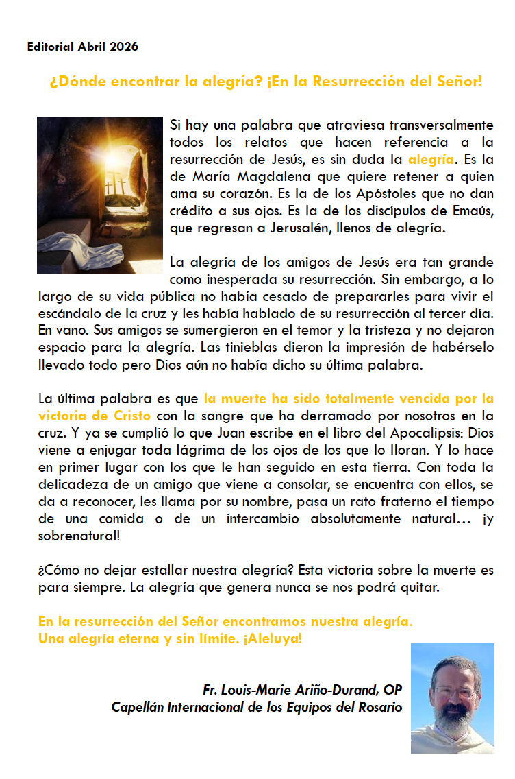 13 de abril: Misa por los benefactores de los Equipos internacionales del Rosario