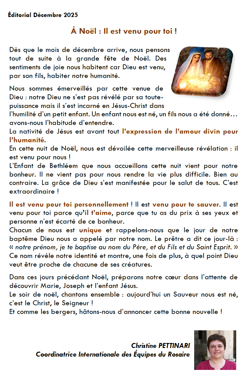13 décembre : Messe pour les bienfaiteurs des Équipes du Rosaire internationales