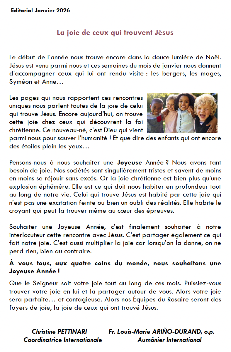 13 janvier : Messe pour les bienfaiteurs des Équipes du Rosaire internationales