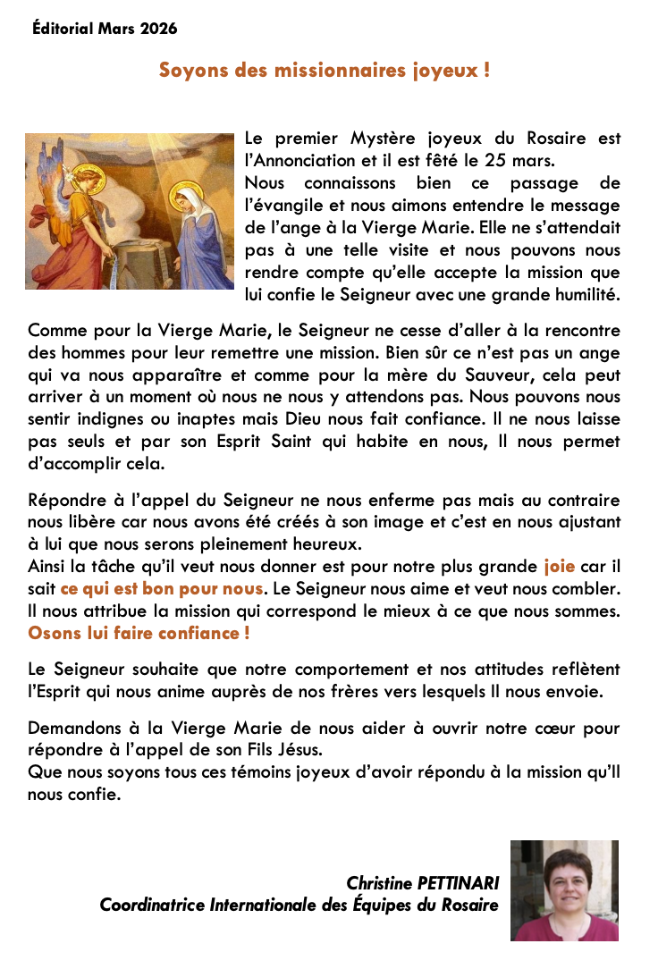 13 octobre : Messe pour les bienfaiteurs des Équipes du Rosaire internationales