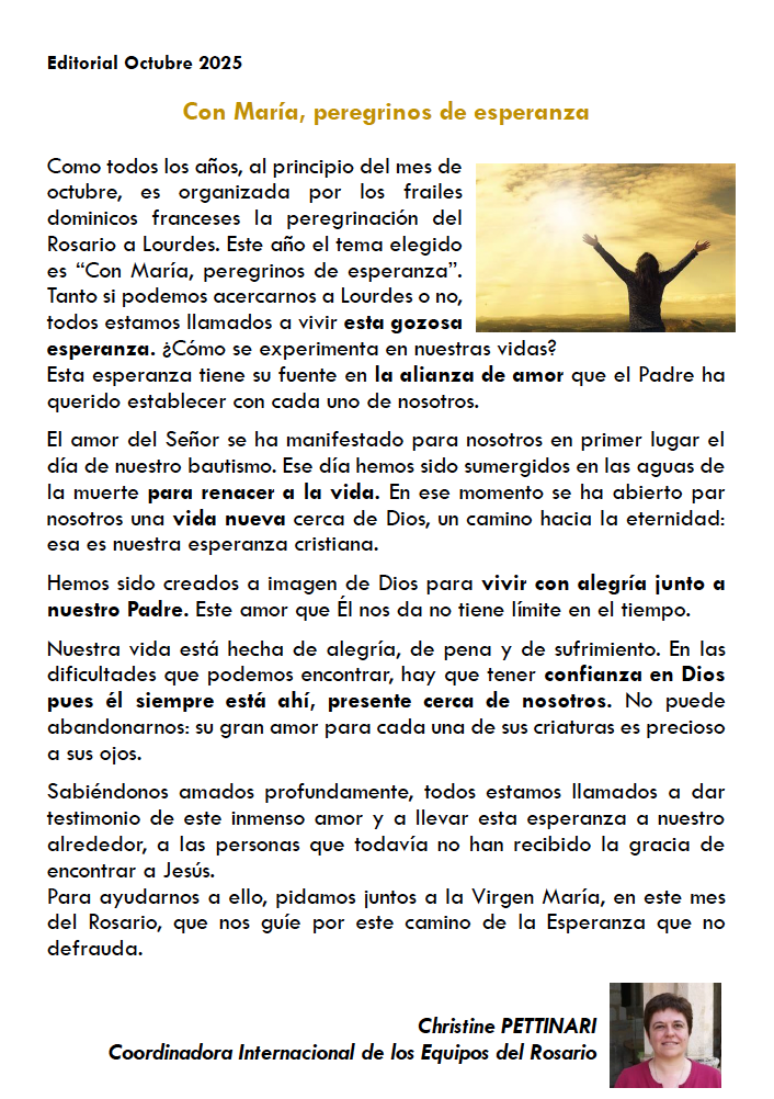 October 1 to 4: Participation in the Pilgrimage of the Rosary in Lourdes