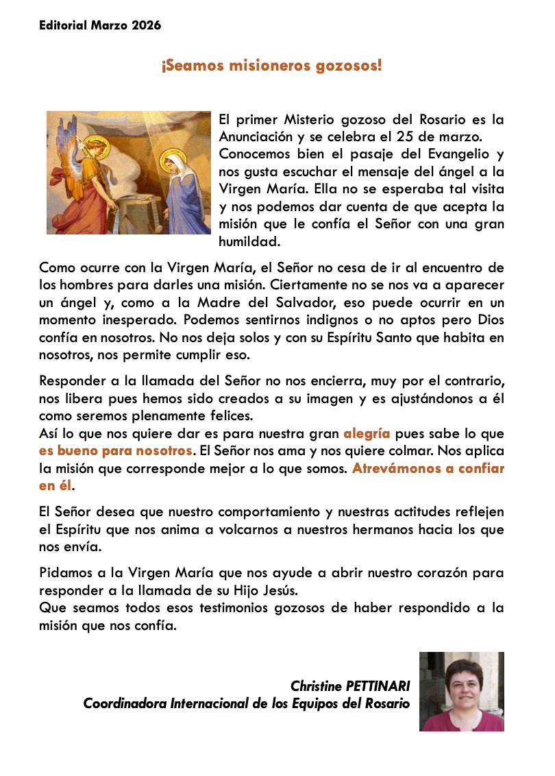 13 de marzo: Misa por los benefactores de los Equipos internacionales del Rosario